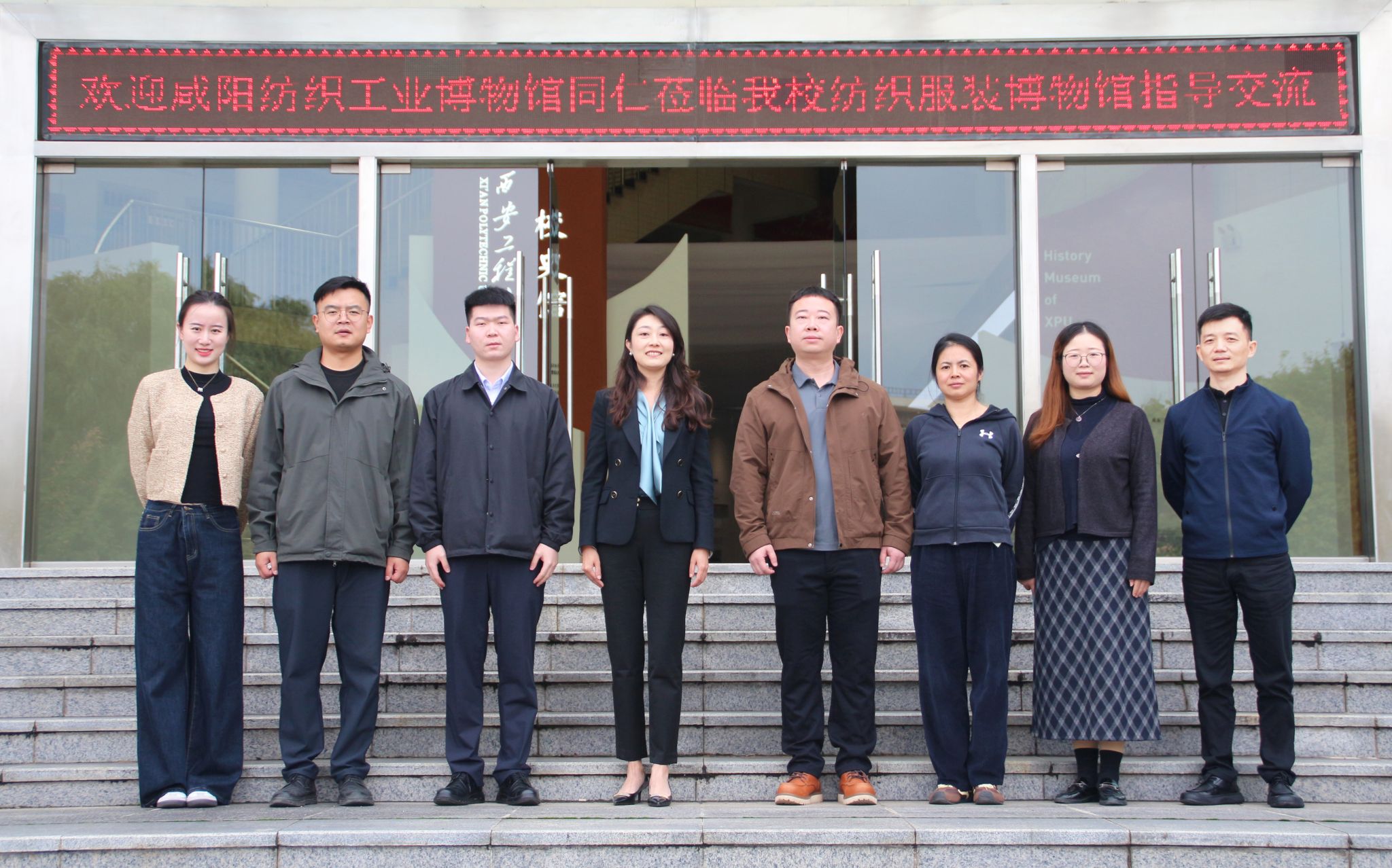 2025.1010月13日,咸阳纺织工业博物馆赵鹏馆长、张丽华副馆长等一行五人到访我校纺织服装...