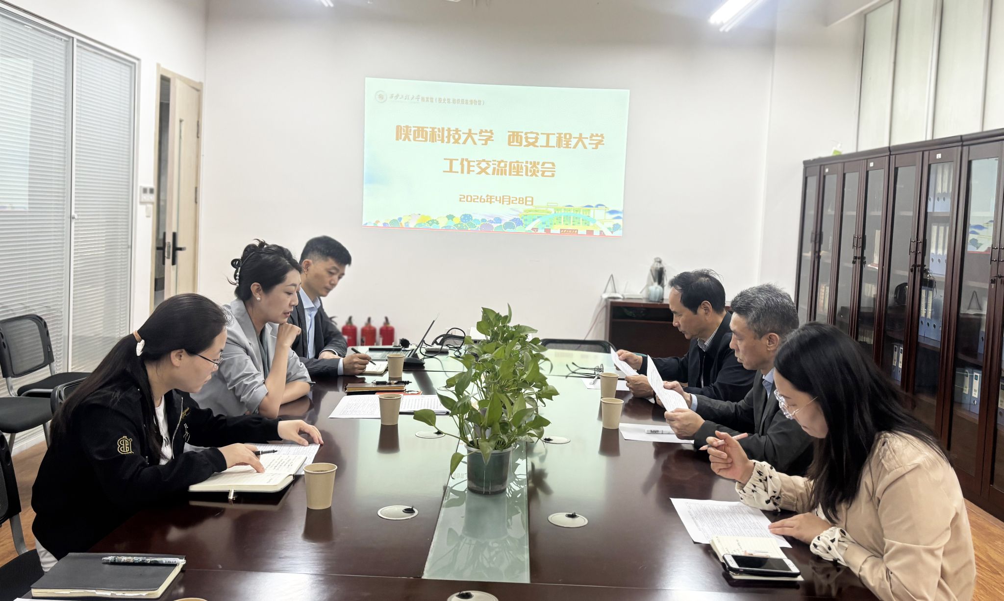 4月28日,陕西科技大学轻工业博物馆馆长方润泽一行莅临我校档案馆,开展校史工作调研交流。我校档案馆负责人王丹莉及相关工作人员陪同接待。